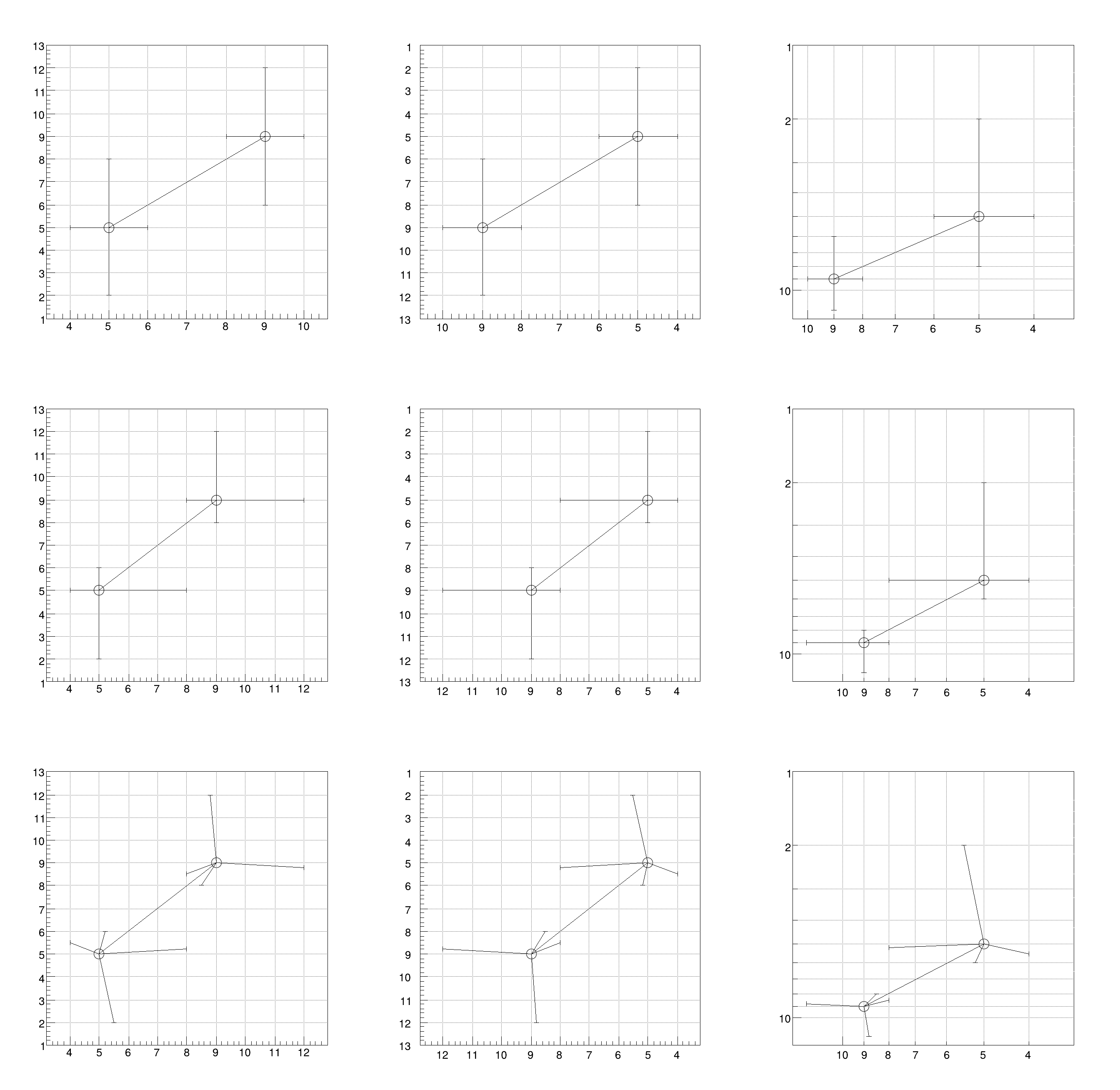 This example tests all the various cases of reverse graphs obtained with Draw("a pl rx ry "), where rx and ry refer to the reversing of x and y axis. | |