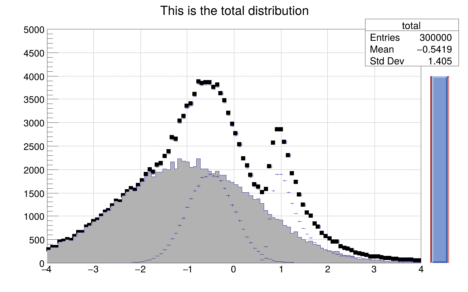 "This is the total distribution",100,-4,4);