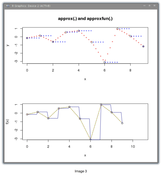 "plot(x, y, main = 'approx(.) and approxfun(.)')";