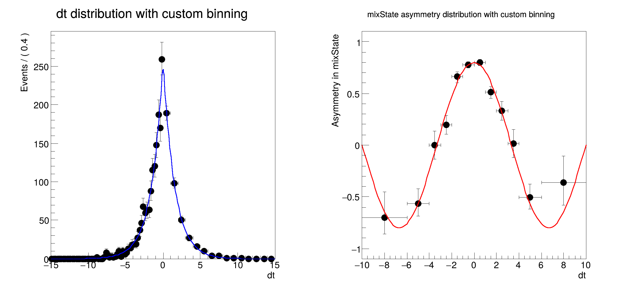 [#1] INFO:Plotting -- RooAbsReal::plotAsymOn(bmix) plot on dt projects variables (tagFlav)