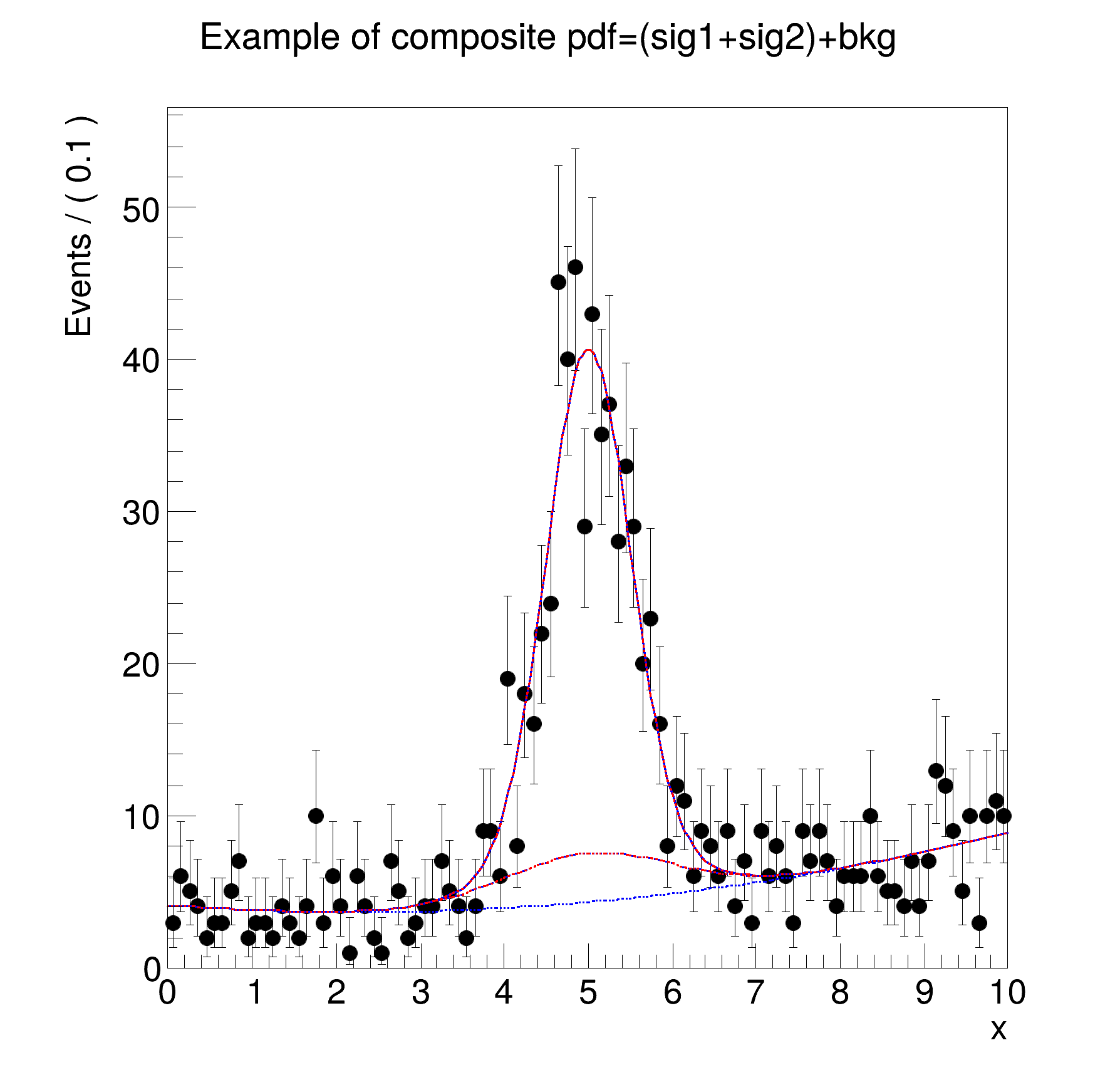 [#1] INFO:Plotting -- RooAbsPdf::plotOn(model) directly selected PDF components: (bkg,sig2)