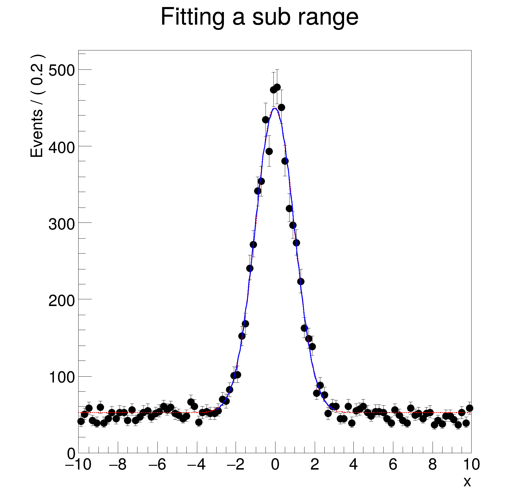 [#1] INFO:Plotting -- RooAbsPdf::plotOn(model) p.d.f was fitted in a subrange and no explicit Range() and NormRange() was specified. Plotting / normalising in fit range. To override, do one of the following