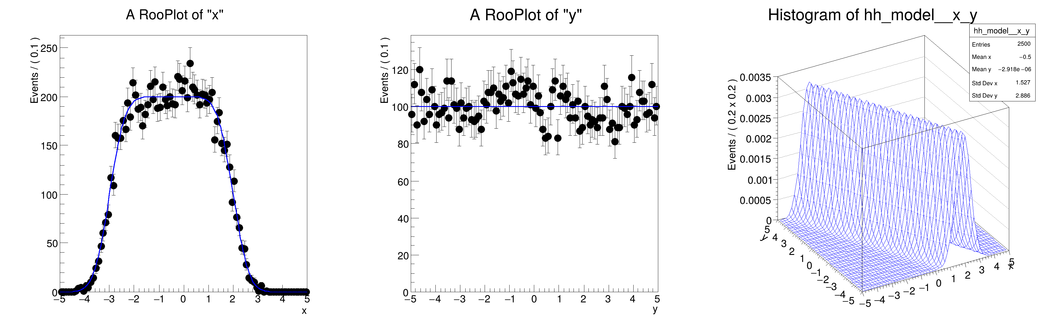 [#1] INFO:Plotting -- RooAbsReal::plotOn(model) plot on x integrates over variables (y)
