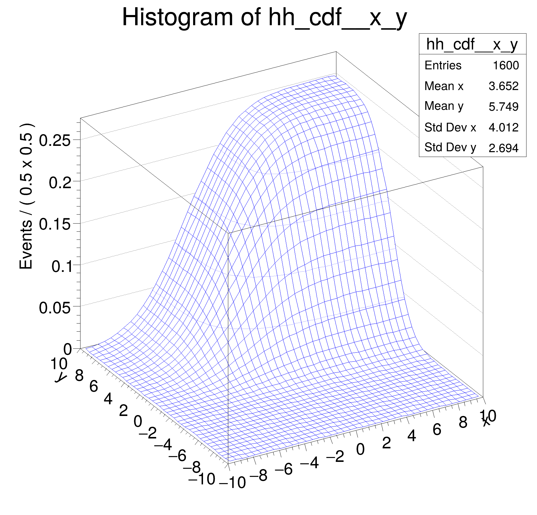 Multidimensional models: normalization and integration of pdfs, construction of cumulative distribution functions from pdfs in two dimensions