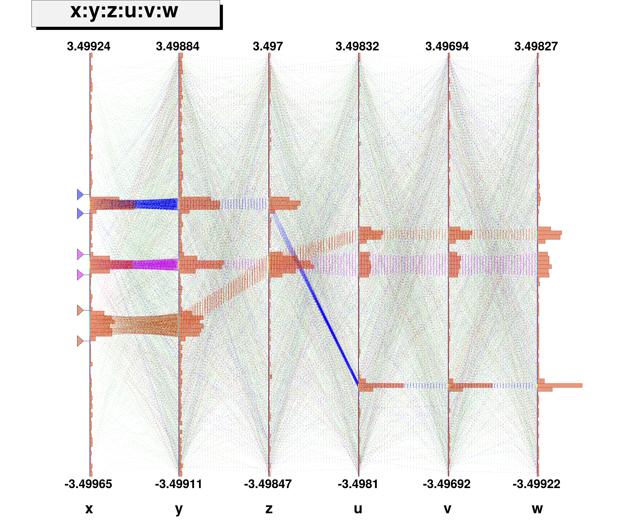 nt->Draw("x:y:z:u:v:w", "", "para", 5000);