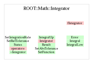 | ROOT::Math::Integrator | Integrator(const ROOT::Math::IGenFunction& f, ROOT::Math::Integration::Type type, ROOT::Math::Integration::GKRule rule, double absTol = 1.E-9, double relTol = 1E-6, size_t size = 1000) |