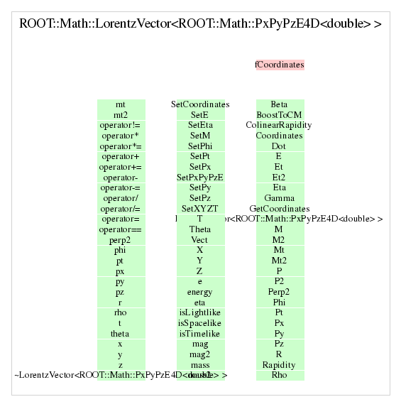 | ROOT::Math::LorentzVector<ROOT::Math::PxPyPzE4D<double> > | LorentzVector<ROOT::Math::PxPyPzE4D<double> >() |