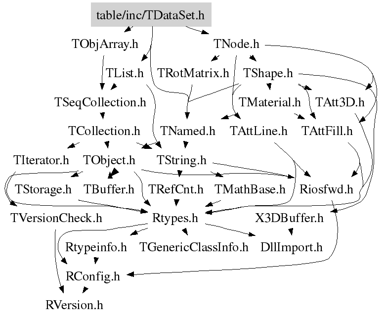TDataSet TDataSet class is to create a special compound object-container: TDataSet object ::= the "named" list of TDataSet objects where the "list" (the pointer to TList object) may contain no object TDataSet object has a back pointer to its "parent" TDataSet object, the "character" *name* and "character" *title* The service this class does provide is to help the user to build and manage the hierarchy of his/her data but the data itself. So it is not "Container" itself rather the basement (base class) to built the containers. One may derive the custom container classes from TDataSet. See for example TObjectSet, TTable, TVolume, TFileSet These classes derived from TDataSet: Class Name TObjectSet::public TDataSet - is a container for TObject TTable:: public TDataSet - is a container for the array of any "plain" C-structure TNode:: public TDataSet - is a container for 3D objects TMaker:: public TDataSet - is a container for STAR "control" objects etc etc TDataSet class is a base class to implement the directory-like data structures and maintain it via TDataSetIter class iterator TDataSet can be iterated using an iterator object (see TDataSetIter) or by TDataSet::Pass method (see below) Terms: Dataset - any object from the list above ===== Member is called "DataSet Member" Structural - the "Dataset Member" is its member "Structural member" if its "back pointer" points to this object Dataset - we will say this TDataSet object "OWNs" Owner (or is an OWNER / PARENT of ) another (parent) TDataSet object if the last one is its "Structural Member" Associated - If some object is not "Structural member" member of this object we will say it is an "Associated Member" of this dataset Orphan - If some dataset is a member of NO other dataset TDataSet object it is called an "orphan" dataset object - Any TDataSet object may be "Owned" by one and only one another TDataSet object if any. - Any TDataSet object can be the "Structural Member" of one and only one another TDataSet - Any TDataSet object may be an "Associated Member" for any number of other TDataSet objects if any - NAME issue: Each "dataset member" is in possession of some "alpha-numerical" NAME as defined by TNamed class. The NAME may contain any "printable" symbols but "SLASH" - "/" The symbol "RIGHT SLASH" - "/" can not be used as any part of the "DataSet Member" NAME Any DataSet can be found by its NAME with TDataSetIter object - TITLE issue: Each "dataset member" is in possession of the "alpha-numerical" TITLE as defined by TNamed class. The meaning of the TITLE is reserved for the derived classes to hold there some indetification that is special for that derived class. This means the user must be careful about the "TDataSet // NAME and TITLE since this may cause some "side effects" of the particular class functions - It is NOT required those all "DataSet Members" are in possession of the unique names, i.e. any number of "DataSet Members" may bear one and the same name Actions: Create DataSet is born either as "Orphan" or as "Structural Member" of another TDataSet object Add One dataset can be included into another dataset. Upon adding: - the "Orphan dataset" becomes "Structural Member" - "Structural Members" of another dataset becomes the "Associated Member" of this datatset Delete - Upon deleting the "Structural Member": - "REMOVES" itself from the "Parent DataSet". - Its "Associated memberships" is not changed though The last means the DataSet with the "Associated Members" may contain a DIED pointers to unexisting "Associated" objects !!! Further information is provided my the particular method descriptions. The TDataSet class has several methods to control object('s) memberships