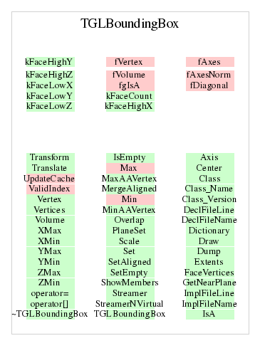 TGLBoundingBox Concrete class describing an orientated (free) or axis aligned box of 8 verticies. Supports methods for setting aligned or orientated boxes, find volume, axes, extents, centers, face planes etc. Also tests for overlap testing of planes and other bounding boxes, with fast sphere approximation.