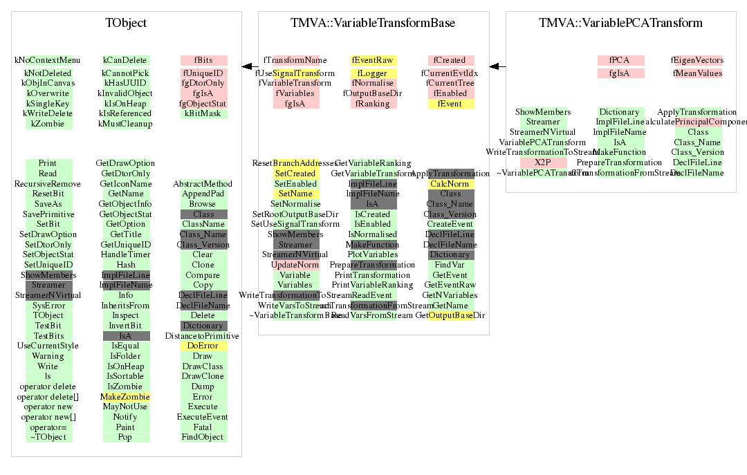 | TMVA::VariablePCATransform | VariablePCATransform(vector<TMVA::VariableInfo>&) |