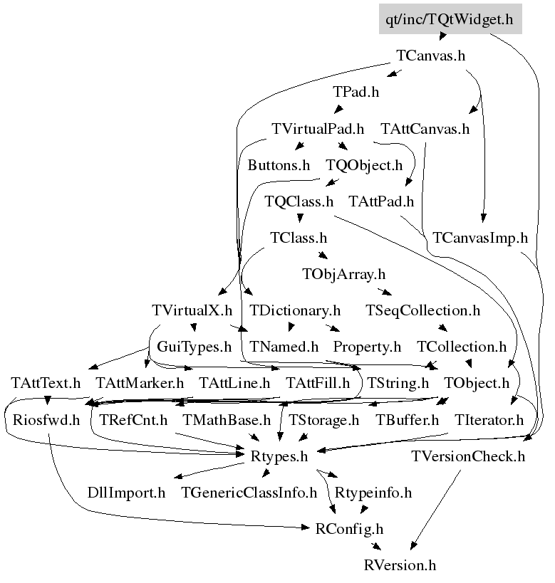 TQtWidget is a QWidget with the QPixmap double buffer It is designed to back the ROOT TCanvasImp class interface and it can be used as a regular Qt Widget to create Qt-based GUI with the embedded TCanvas objects This widget can be used as a Qt "custom widget" to build a custom GUI interfaces with Qt Designer The class emits the Qt signals and has Qt public slots Public slots: (Qt) virtual void cd(); // make the associated TCanvas the current one (shortcut to TCanvas::cd()) virtual void cd(int subpadnumber); // as above - shortcut to Canvas::cd(int subpadnumber) void Disconnect(); // disconnect the QWidget from the ROOT TCanvas (used in the class dtor) void Refresh(); // force the associated TCanvas::Update to be called virtual bool Save(const QString &fileName) const; // Save the widget image with some ppixmap file virtual bool Save(const char *fileName) const; virtual bool Save(const QString &fileName,const char *format,int quality=60) const; virtual bool Save(const char *fileName,const char *format,int quality=60) const; signals (Qt) CanvasPainted(); // Signal the TCanvas has been painted onto the screen Saved(bool ok); // Signal the TCanvas has been saved into the file RootEventProcessed(TObject *selected, unsigned int event, TCanvas *c); // Signal the Qt mouse/keyboard event has been process by ROOT // This "signal" is emitted by the enabled mouse events only. // See: EnableSignalEvents // --- DisableSignalEvents public methods: The methods below define whether the TQtWidget object emits "RootEventProcessed" Qt signals (By default no RootEventProcessed Qt signal is emitted ) void EnableSignalEvents (UInt_t f) void DisableSignalEvents(UInt_t f), where f is a bitwise OR of the mouse event flags: kMousePressEvent // TCanvas processed QEvent mousePressEvent kMouseMoveEvent // TCanvas processed QEvent mouseMoveEvent kMouseReleaseEvent // TCanvas processed QEvent mouseReleaseEvent kMouseDoubleClickEvent // TCanvas processed QEvent mouseDoubleClickEvent kKeyPressEvent // TCanvas processed QEvent keyPressEvent kEnterEvent // TCanvas processed QEvent enterEvent kLeaveEvent // TCanvas processed QEvent leaveEvent For example to create the custom responce to the mouse crossing TCanvas connect the RootEventProsecced signal with your qt slot: connect(tQtWidget,SIGNAL(RootEventProcessed(TObject *, unsigned int, TCanvas *)) ,this,SLOT(CanvasEvent(TObject *, unsigned int, TCanvas *))); . void qtrootexample1::CanvasEvent(TObject *obj, unsigned int event, TCanvas *) { TQtWidget *tipped = (TQtWidget *)sender(); const char *objectInfo = obj->GetObjectInfo(tipped->GetEventX(),tipped->GetEventY()); QString tipText ="You have "; if (tipped == tQtWidget1) tipText +="clicked"; else tipText +="passed"; tipText += " the object <"; tipText += obj->GetName(); tipText += "> of class "; tipText += obj->ClassName(); tipText += " : "; tipText += objectInfo; QWhatsThis::display(tipText) }