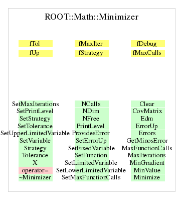 Abstract Minimizer class, defining the interface for the various minimizer (like Minuit2, Minuit, GSL, etc..) Plug-in's exist in ROOT to be able to instantiate the derived classes like ROOT::Math::GSLMinimizer or ROOT::Math::Minuit2Minimizer via the plug-in manager. Provides interface for setting the function to be minimized. The function must implemente the multi-dimensional generic interface ROOT::Math::IBaseFunctionMultiDim. If the function provides gradient calculation (implements the ROOT::Math::IGradientFunctionMultiDim interface) this will be used by the Minimizer. It Defines also interface for setting the initial values for the function variables (which are the parameters in of the model function in case of solving for fitting) and especifying their limits. It defines the interface to set and retrieve basic minimization parameters (for specific Minimizer parameters one must use the derived classes). Then it defines the interface to retrieve the result of minimization ( minimum X values, function value, gradient, error on the mimnimum, etc...) @ingroup MultiMin