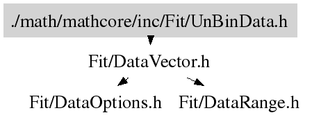 UnBinData : class describing the unbinned data (just x coordinates values) of any dimensions There is the option to construct UnBindata copying the data in (using the DataVector class) or using pointer to external data (DataWrapper) class. In general is found to be more efficient to copy the data. In case of really large data sets for limiting memory consumption then the other option can be used Specialized constructor exists for using external data up to 3 dimensions. When the data are copying in the number of points can be set later (or re-set) using Initialize and the data are pushed in (one by one) using the Add method. @ingroup FitData