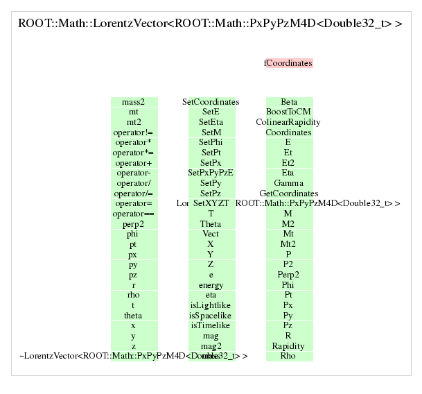 | ROOT::Math::LorentzVector<ROOT::Math::PxPyPzM4D<Double32_t> > | LorentzVector<ROOT::Math::PxPyPzM4D<Double32_t> >() |
