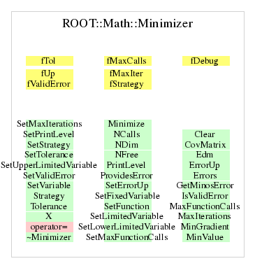 Abstract Minimizer class, defining the interface for the various minimizer (like Minuit2, Minuit, GSL, etc..) Plug-in's exist in ROOT to be able to instantiate the derived classes like ROOT::Math::GSLMinimizer or ROOT::Math::Minuit2Minimizer via the plug-in manager. Provides interface for setting the function to be minimized. The function must implemente the multi-dimensional generic interface ROOT::Math::IBaseFunctionMultiDim. If the function provides gradient calculation (implements the ROOT::Math::IGradientFunctionMultiDim interface) this will be used by the Minimizer. It Defines also interface for setting the initial values for the function variables (which are the parameters in of the model function in case of solving for fitting) and especifying their limits. It defines the interface to set and retrieve basic minimization parameters (for specific Minimizer parameters one must use the derived classes). Then it defines the interface to retrieve the result of minimization ( minimum X values, function value, gradient, error on the mimnimum, etc...) @ingroup MultiMin