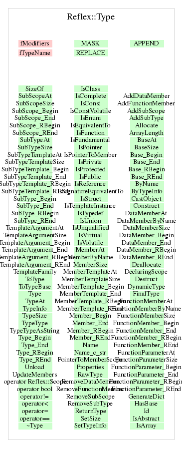 | Reflex::Type | Type(const Reflex::TypeName* typName = 0, unsigned int modifiers = 0) |