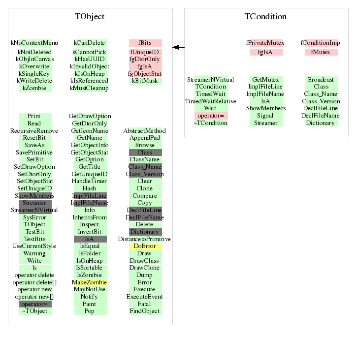 | virtual Bool_t | TObject::InheritsFrom(const TClass* cl) const |