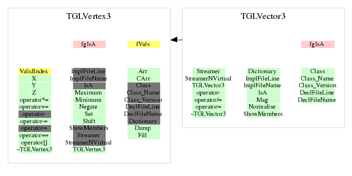 TGLVector3 3 component (x/y/z) vector class This is part of collection of utility classes for GL in TGLUtil.h/cxx These provide const and non-const accessors Arr() / CArr() to a GL compatible internal field - so can be used directly with OpenGL C API calls. They are not intended to be fully featured just provide minimum required.