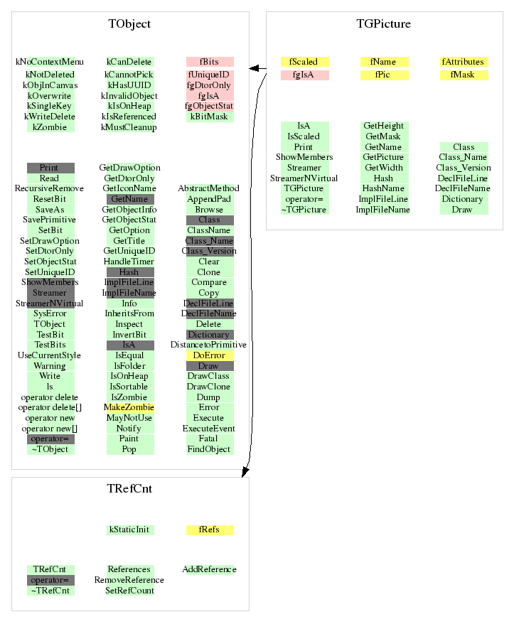 | virtual Bool_t | TObject::InheritsFrom(const char* classname) const |