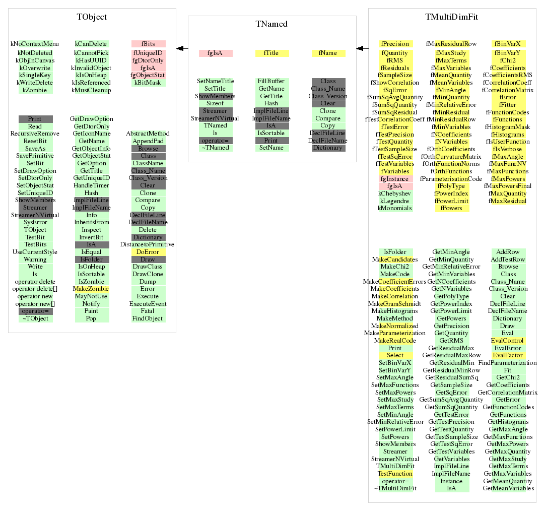 This class TMultiDimFit implements such a procedure in ROOT. It is largely based on the CERNLIB MUDIFI package [2]. Though the basic concepts are still sound, and therefore kept, a few implementation details have changed, and this class can take advantage of MINUIT [4] to improve the errors of the fitting, thanks to the class TMinuit.