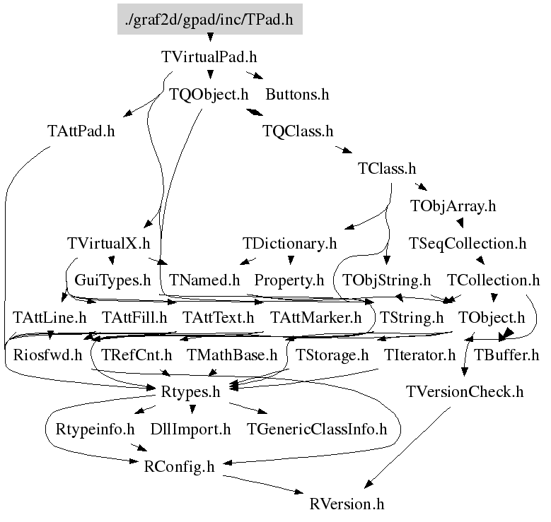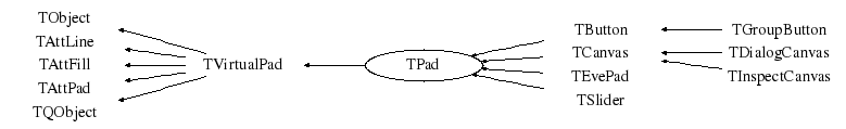 A Pad is contained in a Canvas. A Pad may contain other pads (unlimited pad hierarchy). A pad is a linked list of primitives of any type (graphics objects, histograms, detectors, tracks, etc.). Adding a new element into a pad is in general performed by the Draw member function of the object classes. It is important to realize that the pad is a linked list of references to the original object. For example, in case of a histogram, the histogram.Draw() operation only stores a reference to the histogram object and not a graphical representation of this histogram. When the mouse is used to change (say the bin content), the bin content of the original histogram is changed !! The convention used in ROOT is that a Draw operation only adds a reference to the object. The effective drawing is performed when the canvas receives a signal to be painted. This signal is generally sent when typing carriage return in the command input or when a graphical operation has been performed on one of the pads of this canvas. When a Canvas/Pad is repainted, the member function Paint for all objects in the Pad linked list is invoked. When the mouse is moved on the Pad, The member function DistancetoPrimitive is called for all the elements in the pad. DistancetoPrimitive returns the distance in pixels to this object. when the object is within the distance window, the member function ExecuteEvent is called for this object. in ExecuteEvent, move, changes can be performed on the object. For examples of DistancetoPrimitive and ExecuteEvent functions, see classes TLine::DistancetoPrimitive, TLine::ExecuteEvent TBox::DistancetoPrimitive, TBox::ExecuteEvent TH1::DistancetoPrimitive, TH1::ExecuteEvent A Pad supports linear and log scales coordinate systems. The transformation coefficients are explained in TPad::ResizePad. An example of pads hierarchy is shown below:/*