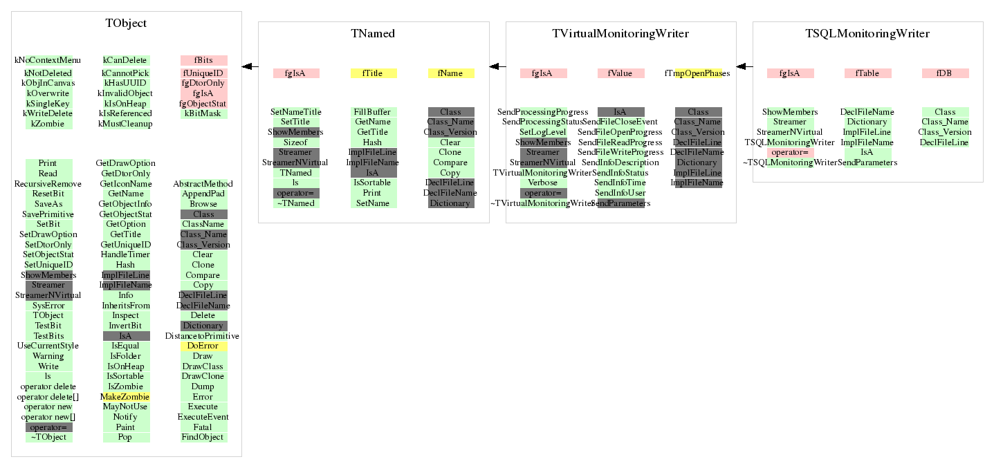 | virtual Bool_t | TObject::InheritsFrom(const TClass* cl) const |