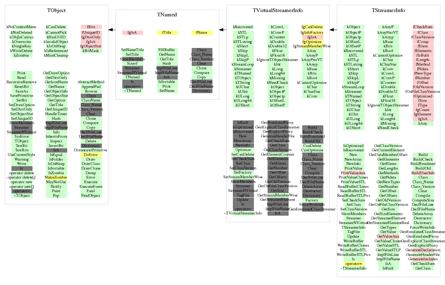 A TStreamerInfo is a list of TStreamerElement objects (one per data