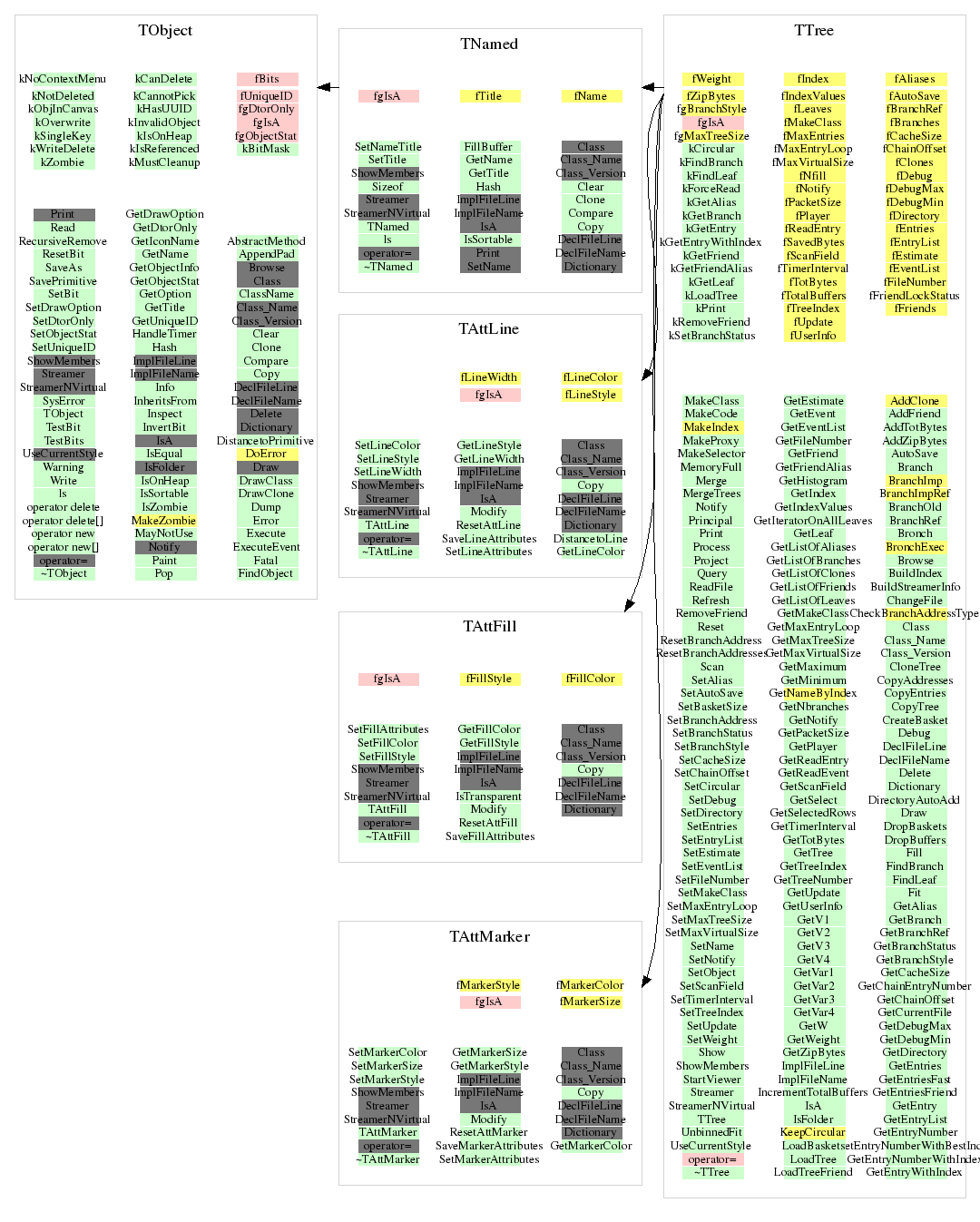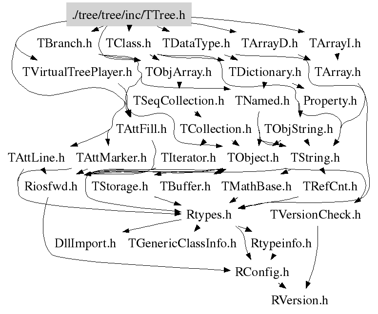 TTree a TTree object has a header with a name and a title. It consists of a list of independent branches (TBranch). Each branch has its own definition and list of buffers. Branch buffers may be automatically written to disk or kept in memory until the Tree attribute fMaxVirtualSize is reached. Variables of one branch are written to the same buffer. A branch buffer is automatically compressed if the file compression attribute is set (default). Branches may be written to different files (see TBranch::SetFile). The ROOT user can decide to make one single branch and serialize one object into one single I/O buffer or to make several branches. Making one single branch and one single buffer can be the right choice when one wants to process only a subset of all entries in the tree. (you know for example the list of entry numbers you want to process). Making several branches is particularly interesting in the data analysis phase, when one wants to histogram some attributes of an object (entry) without reading all the attributes. ==> TTree *tree = new TTree(name, title) Creates a Tree with name and title. Various kinds of branches can be added to a tree: A - simple structures or list of variables. (may be for C or Fortran structures) B - any object (inheriting from TObject). (we expect this option be the most frequent) C - a ClonesArray. (a specialized object for collections of same class objects) ==> Case A TBranch *branch = tree->Branch(branchname, address, leaflist, bufsize) * address is the address of the first item of a structure * leaflist is the concatenation of all the variable names and types separated by a colon character : The variable name and the variable type are separated by a slash (/). The variable type may be 0,1 or 2 characters. If no type is given, the type of the variable is assumed to be the same as the previous variable. If the first variable does not have a type, it is assumed of type F by default. The list of currently supported types is given below: - C : a character string terminated by the 0 character - B : an 8 bit signed integer (Char_t) - b : an 8 bit unsigned integer (UChar_t) - S : a 16 bit signed integer (Short_t) - s : a 16 bit unsigned integer (UShort_t) - I : a 32 bit signed integer (Int_t) - i : a 32 bit unsigned integer (UInt_t) - F : a 32 bit floating point (Float_t) - D : a 64 bit floating point (Double_t) - L : a 64 bit signed integer (Long64_t) - l : a 64 bit unsigned integer (ULong64_t) - O : a boolean (Bool_t) * if address points to a single numerical variable, the leaflist is optional: int value; tree->Branch(branchname, &value); ==> Case B TBranch *branch = tree->Branch(branchname, &p_object, bufsize, splitlevel) TBranch *branch = tree->Branch(branchname, className, &p_object, bufsize, splitlevel) * p_object is a pointer to an object. * If className is not specified, Branch uses the type of p_object to determine the type of the object. * If className is used to specify explicitly the object type, the className must be of a type related to the one pointed to by the pointer. It should be either a parent or derived class. * if splitlevel=0, the object is serialized in the branch buffer. * if splitlevel=1 (default), this branch will automatically be split into subbranches, with one subbranch for each data member or object of the object itself. In case the object member is a TClonesArray, the mechanism described in case C is applied to this array. * if splitlevel=2 ,this branch will automatically be split into subbranches, with one subbranch for each data member or object of the object itself. In case the object member is a TClonesArray, it is processed as a TObject*, only one branch. Note: The pointer whose address is passed to TTree::Branch must not be destroyed (i.e. go out of scope) until the TTree is deleted or TTree::ResetBranchAddress is called. Note: The pointer p_object must be initialized before calling TTree::Branch Do either: MyDataClass* p_object = 0; tree->Branch(branchname, &p_object); Or MyDataClass* p_object = new MyDataClass; tree->Branch(branchname, &p_object); ==> Case C MyClass object; TBranch *branch = tree->Branch(branchname, &object, bufsize, splitlevel) Note: The 2nd parameter must be the address of a valid object. The object must not be destroyed (i.e. be deleted) until the TTree is deleted or TTree::ResetBranchAddress is called. * if splitlevel=0, the object is serialized in the branch buffer. * if splitlevel=1 (default), this branch will automatically be split into subbranches, with one subbranch for each data member or object of the object itself. In case the object member is a TClonesArray, the mechanism described in case C is applied to this array. * if splitlevel=2 ,this branch will automatically be split into subbranches, with one subbranch for each data member or object of the object itself. In case the object member is a TClonesArray, it is processed as a TObject*, only one branch. ==> Case D TBranch *branch = tree->Branch(branchname,clonesarray, bufsize, splitlevel) clonesarray is the address of a pointer to a TClonesArray. The TClonesArray is a direct access list of objects of the same class. For example, if the TClonesArray is an array of TTrack objects, this function will create one subbranch for each data member of the object TTrack. ==> Case E TBranch *branch = tree->Branch( branchname, STLcollection, buffsize, splitlevel ); STLcollection is the address of a pointer to std::vector, std::list, std::deque, std::set or std::multiset containing pointers to objects. If the splitlevel is a value bigger than 100 then the collection will be written in split mode. Ie. if it contains objects of any types deriving from TTrack this function will sort the objects basing on their type and store them in separate branches in split mode. ==> branch->SetAddress(Void *address) In case of dynamic structures changing with each entry for example, one must redefine the branch address before filling the branch again. This is done via the T