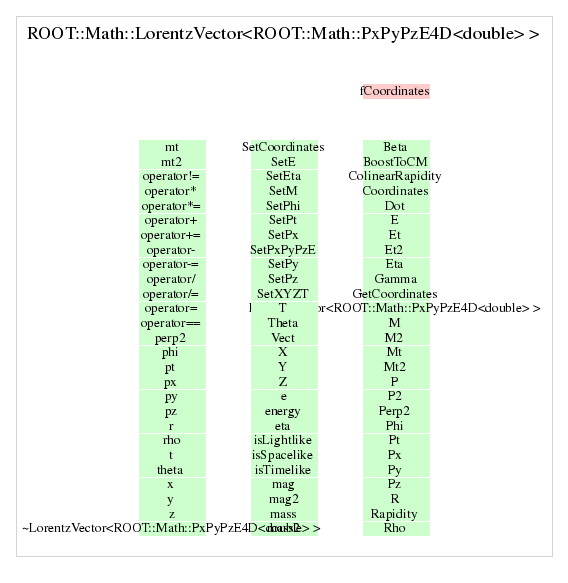ROOT::Math::LorentzVector<ROOT::Math::PxPyPzE4D<double> > | LorentzVector<ROOT::Math::PxPyPzE4D<double> >() |