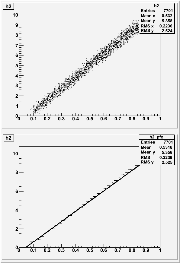 //example illustrating how to fit a 2-d histogram of type y=f(x)
