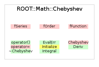 | ROOT::Math::Chebyshev | Chebyshev(ROOT::Math::GSLFuncPointer f, void* p, double a, double b, size_t n) |
