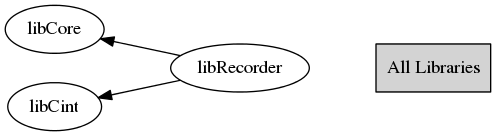 ROOT EVENT RECORDING SYSTEM TRecorder class provides interface for recording and replaying events in ROOT. Recorded events are: - Commands typed by user in commandline ('new TCanvas') - GUI events (mouse movement, button clicks, ...) All the recorded events from one session are stored in one TFile and can be replayed again anytime. Recording 1] To start recording TRecorder r(const char *filename, "NEW") TRecorder r(const char *filename, "RECREATE") or: TRecorder *recorder = new TRecorder; recorder->Start(const char *filename, ...) -filename Name of ROOT file in which to save recorded events. 2] To stop recording recorder->Stop() IMPORTANT: State capturing is part of recording. It means that if you want to record events for some object (window), creation of this object must be also recorded. Example: t = new TRecorder(); // Create a new recorder t->Start("logfile.root"); // ! Start recording first c = new TCanvas(); // ! Then, create an object c->Dump(); // Work with that object t->Stop(); // Stop recording It is strongly recommended to start recording with empty ROOT environment, at least with no previously created ROOT GUI. This ensures that only events for well known windows are stored. Events for windows, which were not created during recording, cannot be replayed. Replaying 1] To start replaying TRecorder r(const char *filename) TRecorder r(const char *filename, "READ") or: TRecorder *recorder = new TRecorder; recorder->Replay(const char *filename, Bool_t showMouseCursor = kTRUE); -filename A name of file with recorded events previously created with TRecorder::Start -showMouseCursor If kTRUE, mouse cursor is replayed as well. In that case it is not recommended to use mouse during replaying. In general, it is not recommended to use mouse to change positions and states of ROOT windows during replaying. IMPORTANT: The state of ROOT environment before replaying of some events must be exactly the same as before recording them. Therefore it is strongly recommended to start both recording and replaying with empty ROOT environment. 2] To pause replaying recorder->Pause() Replaying is stopped until recorder->Resume() is called. 3] To resume paused replaying recorder->Resume() Resumes previously stopped replaying. 4] To stop replaying before its end recorder->Stop()