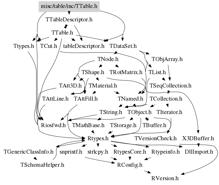 TTable Wraps the array of the plain C-structures (one C-structure per element) class TTable provides the automatic schema evolution for the derived "table" classes saved with ROOT format. "Automatic Schema evolution" provides: - skipping data-member if it is not present for the current implementation of the "table" but was present at the time the table was written; - assign a default value ZERO for the brand-new data-members, those were not in the structure when the object was written but present now; - trace propely any change in the order of the data-members To enjoy this class one has to derive one's own custom class: St_dst_track_Table.h: #ifndef STAF_St_dst_track_Table #define STAF_St_dst_track_Table #include "TTable.h" #include "dst_track.h" the C-structure defintion may be kept separately typedef struct dst_track_st { float r0; /* radius at start (cm). See also comments* float phi0; /* azimuthal angle at start (deg) * float z0; /* z-coord. at start (cm) * float psi; /* azimuthal angle of pT vector (deg) * float tanl; /* tan(dip) =pz/pt at start * float invpt; /* 1/pt at start (GeV/c)^(-1) * float curvature; /* Track curvature (1/cm) * float covar[15]; /* full covariance matrix * float chisq[2]; /* Chi-square per degree of freedom * float x_first[3]; /* coord. of first measured point (cm) * float x_last[3]; /* coord. of last measured point (cm) * float length; /* from first to last point (cm) * float impact; /* primary vertex (cm) * unsigned long map[2]; /* extrap. info. (see preceding comments)* int id; /* Primary key (see comments) * int iflag; /* bitmask quality info. (see comments) * int det_id; /* Detector id information * int method; /* Track finding/fitting method, packed * int pid; /* Geant particle ID for assumed mass * int n_point; /* SVT, TPC, FTPC component #s are packed * int n_max_point; /* SVT, TPC, FTPC component #s are packed * int n_fit_point; /* SVT, TPC, FTPC component #s are packed * int icharge; /* Particle charge in units of |e| * int id_start_vertex; /* final fit and primary track candidates * } DST_TRACK_ST; class St_dst_track : public TTable { public: ClassDefTable(St_dst_track,dst_track_st) ClassDef(St_dst_track,2) //C++ wrapper for <dst_track> StAF table }; #endif where the CPP macro defines several convinient methods for the "table" class (see: $ROOTSYS/table/inc/Ttypes.h for details: #define ClassDefTable(className,structName) protected: static TTableDescriptor *fgColDescriptors; virtual TTableDescriptor *GetDescriptorPointer() const { return fgColDescriptors;} virtual void SetDescriptorPointer(TTableDescriptor *list) const { fgColDescriptors = list;} public: typedef structName* iterator; className() : TTable(_QUOTE_(className),sizeof(structName)) {SetType(_QUOTE_(structName));} className(const char *name) : TTable(name,sizeof(structName)) {SetType(_QUOTE_(structName));} className(Int_t n) : TTable(_QUOTE_(className),n,sizeof(structName)) {SetType(_QUOTE_(structName));} className(const char *name,Int_t n) : TTable(name,n,sizeof(structName)) {SetType(_QUOTE_(structName));} structName *GetTable(Int_t i=0) const { return ((structName *)GetArray())+i;} structName &operator[](Int_t i){ assert(i>=0 && i < GetNRows()); return *GetTable(i); } const structName &operator[](Int_t i) const { assert(i>=0 && i < GetNRows()); return *((const structName *)(GetTable(i))); } structName *begin() const { return GetNRows()? GetTable(0):0;} structName *end() const {Int_t i = GetNRows(); return i? GetTable(i):0;} The class implementation file may 2 lines and look as follows: (for the example above): St_dst_track_Table.cxx: #include "St_dst_track_Table.h" TableClassImpl(St_dst_track, dst_track_st) LinkDef.h To provide ROOT I/O for this class TWO CINT dictonary entries should be defined with your custom LinkDef.h file 1. First entry (as usually) for the class derived from TTable for example: #pragma C++ class St_dst_track 2. Second entry for the C-structure wrapped into the class. Since C-structuire is not derived from TObject it must be properly defined as "foreign" ROOT class #pragma C++ class dst_track_st+; meta-variables i$ and n$ introduced where "i$" stands for the current row index "n$" stands for the total number of rows meta-variable can be used along the normal table column names in the expressions (see for example method TTable::Draw